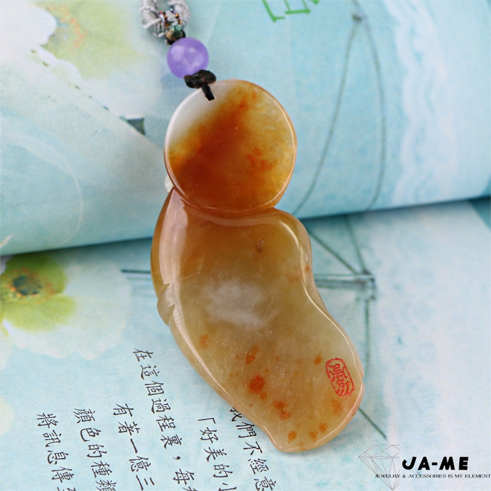 【JA-ME】天然A貨翡翠天然黃翡灑金怡然自得玉墜
