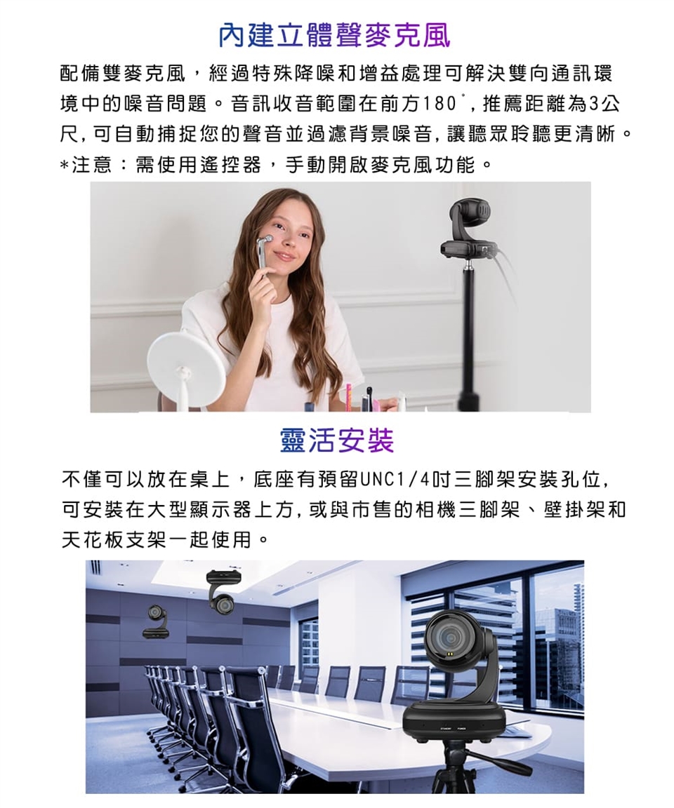 麥克風輸入:內置雙麥克風 平移/傾斜