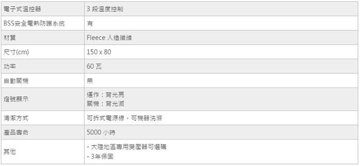 配備德國博依 BSS 三重電熱安全防護系統,確保最佳的使用安全性。並提供 3 段溫度控制,讓您享受絕佳的舒眠溫度。