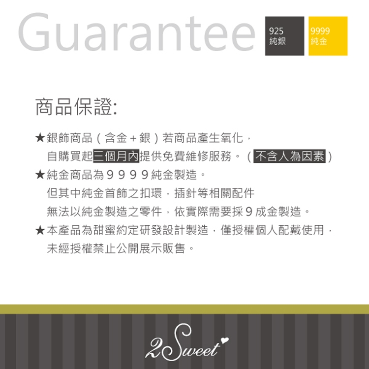 ◆小小叮嚀:黃金飾品需要以重量來計算價格,但同款商品每一個實品重量都會略有不同,刊登上的重量是第一次現貨的重量,若是賣掉後再製作重量會略有差異,無法每次製作都精確修改,基本上重量差異都不會太大,大約5厘上下(0.05錢) 。【注意事項】如有特殊需求(戒圍、包裝、指定送貨日期等)請於「地址欄」後方加註,謝謝!商品圖檔顏色因電腦螢幕設定差異會略有不同,以實際商品顏色為準,請見諒。商品鑑賞期間如需退換貨請保持商品完整,且必須為『全新未經使用』狀態且完整包裝,否則視同缺件無法退換喔!!(包含購買商品、附件、內 外包裝、隨機文件、贈品、包裝彩盒等...均務必保持完整齊全)