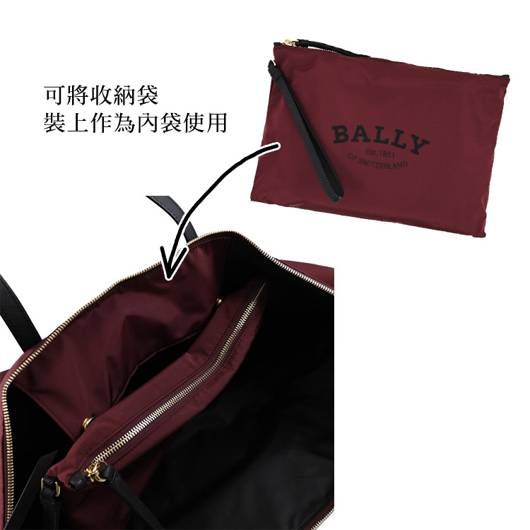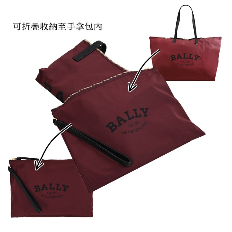 瑞士工藝代表百年精品BALLY,採用質感尼龍拼接皮革搭配經典燙印大LOGO,拉鍊開口,可裝A4文件、衣物、摺疊傘等隨身物品,附1收納手拿包(可扣於托特包內作拉鍊內袋使用),包包可摺疊收納至手拿包中,包身後方設有行李箱插帶可固定於行李箱上,設計簡潔有型且超大收納容量,無論上班或外出出遊逛街都合適,是款輕便又實用的包款。
