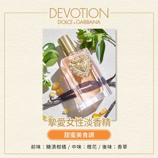 摯愛淡香精是Dolce&Gabbana第一款明亮美食調香水。讓人為之一亮的香調與名字,確切符合表達了品牌的DNA。它的香味被聖心封存在高質感的方形瓶身裡,決意要引領大家進入義大利的歡樂氛圍中!