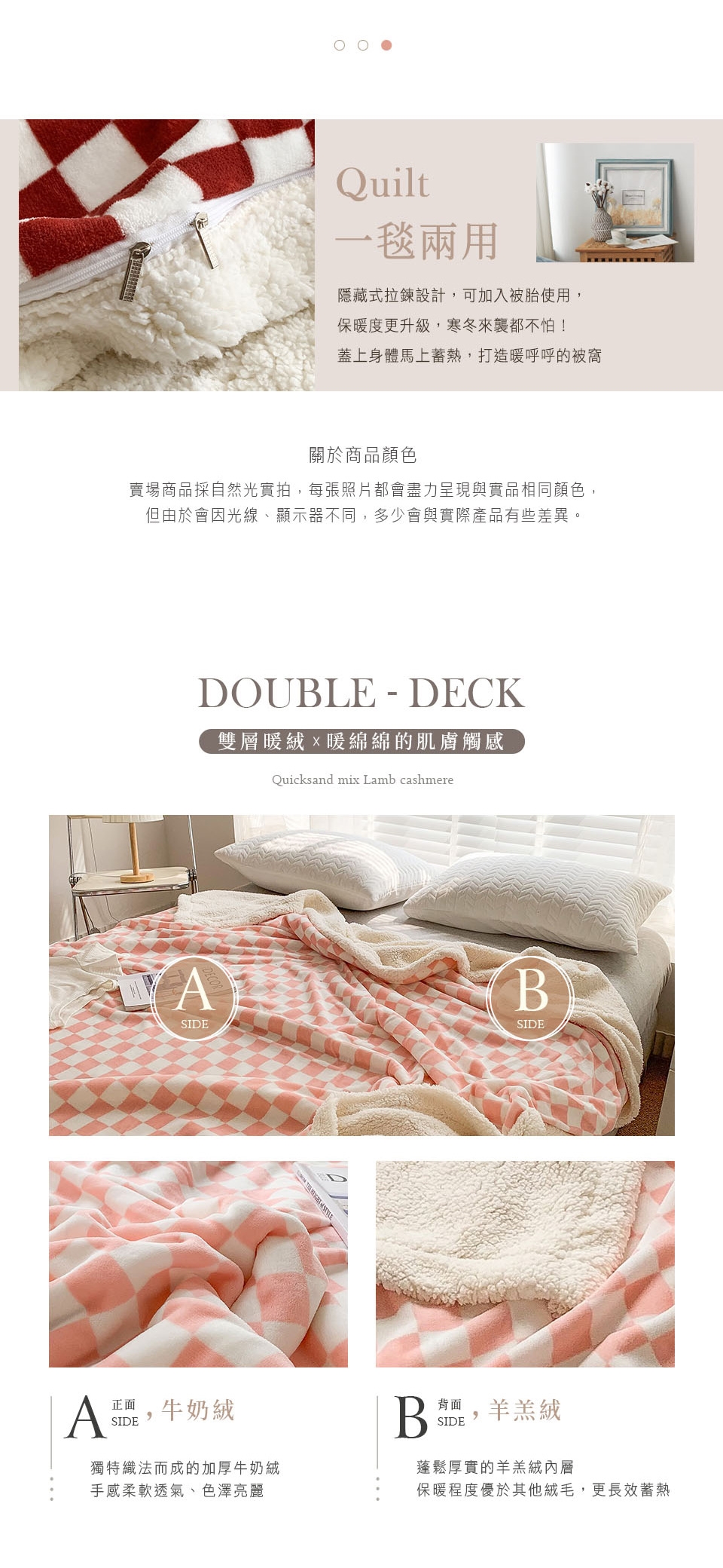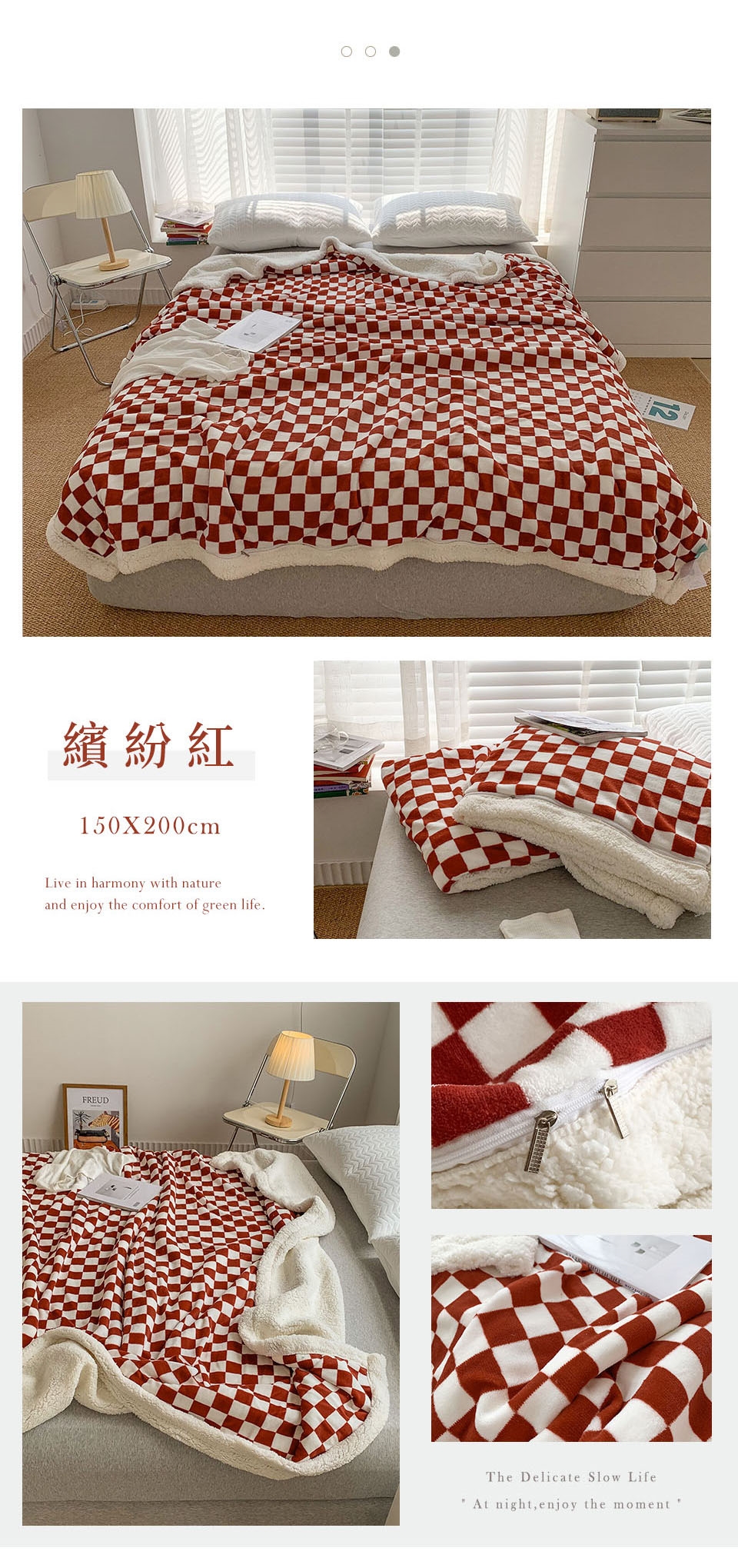 BELLE VIE (買一送一) 復古棋盤格 牛奶絨x羊羔絨 多功能毯被 (150X200cm) 多色任選