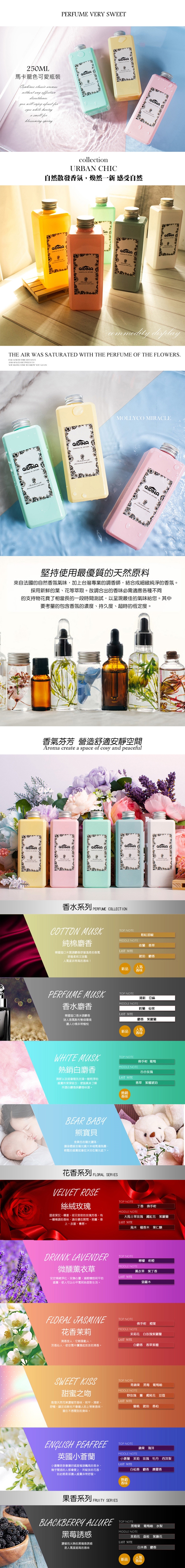※花香系列:絲絨玫瑰、微醺薰衣草、花香茉莉、甜蜜之吻、英國小蒼蘭