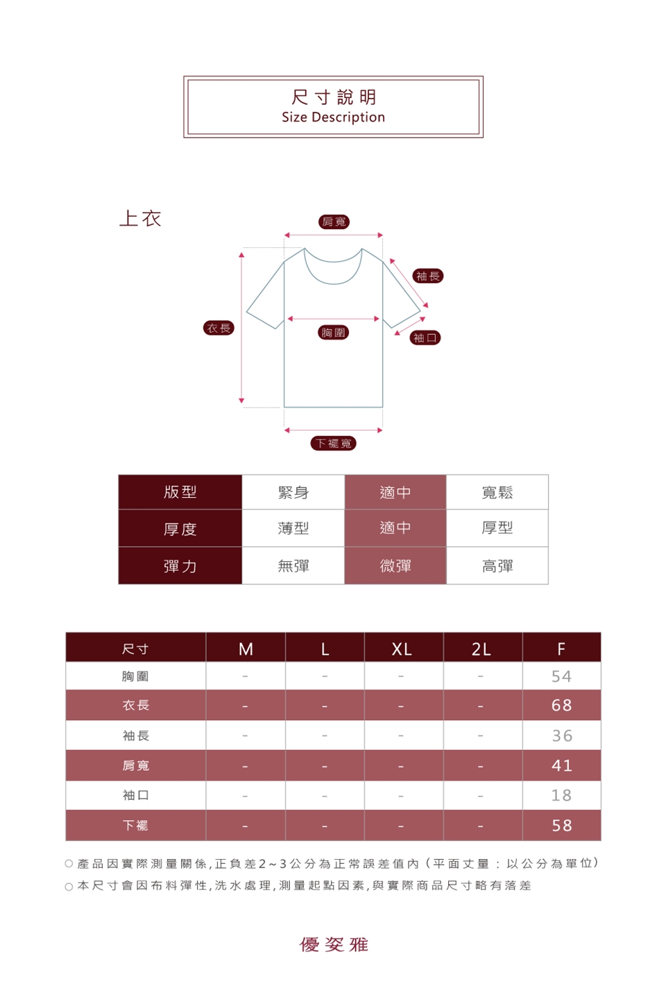 ※ 本尺寸會因布料彈性、洗水處裡、測量起點因素與實際尺寸略有落差