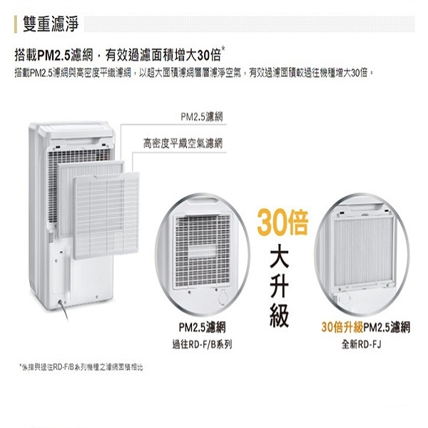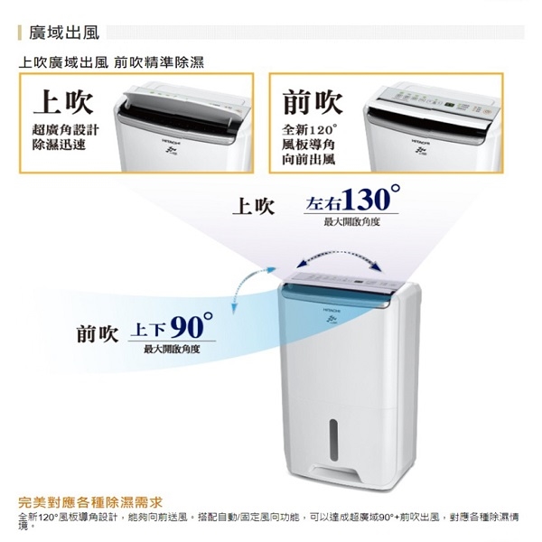 自動除霜‧濕度顯示/設定‧自定濕度‧快速乾衣‧停電自動復歸裝置‧超廣角上吹+前吹‧LED運轉模式指示燈