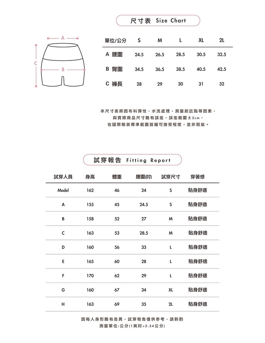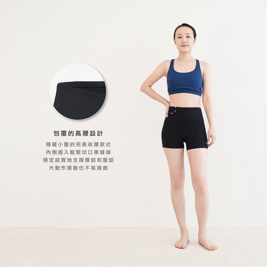 - 內側插入鬆緊切口車縫線,穩定支撐腰部和腹部,大動作也不易捲曲。