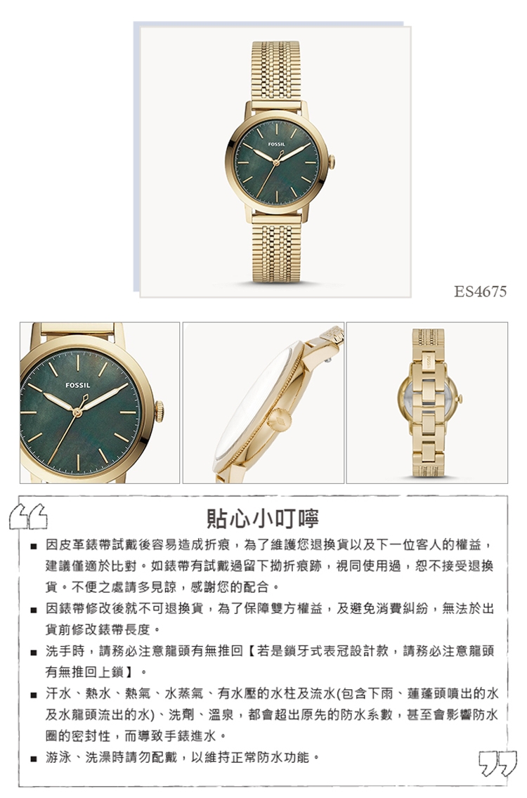 ■注意事項:洗手時,請務必注意龍頭有無推回【若是鎖牙式表冠設計款,請務必注意龍頭有無推回上鎖】。游泳或洗澡時請勿配戴,以維持其正常防水功能。
