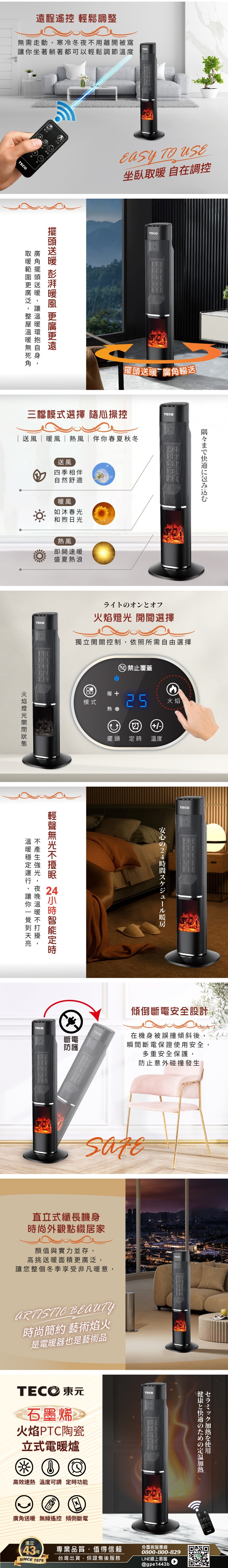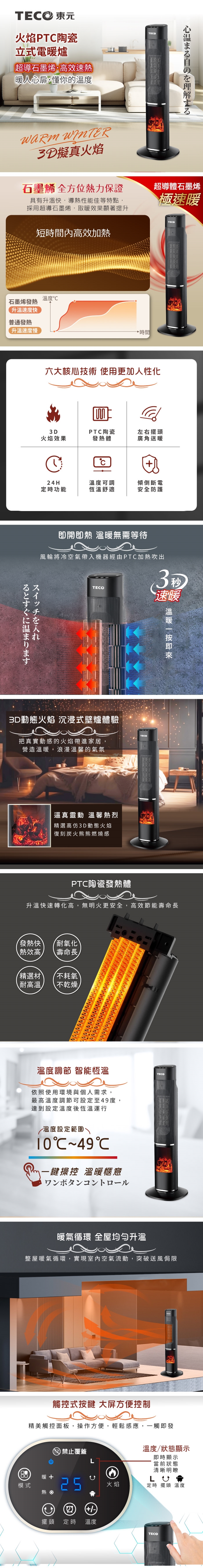 【TECO東元】3D擬真火焰PTC陶瓷立式電暖爐