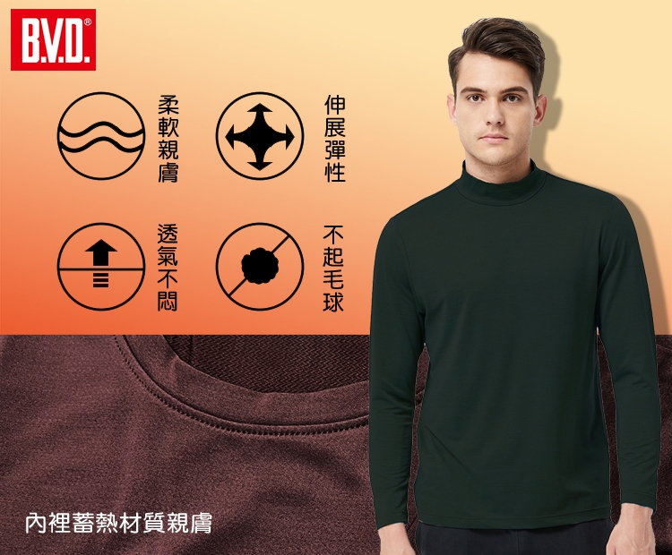 商品內容:BVD 蓄熱恆溫圓領/半高領長袖衫