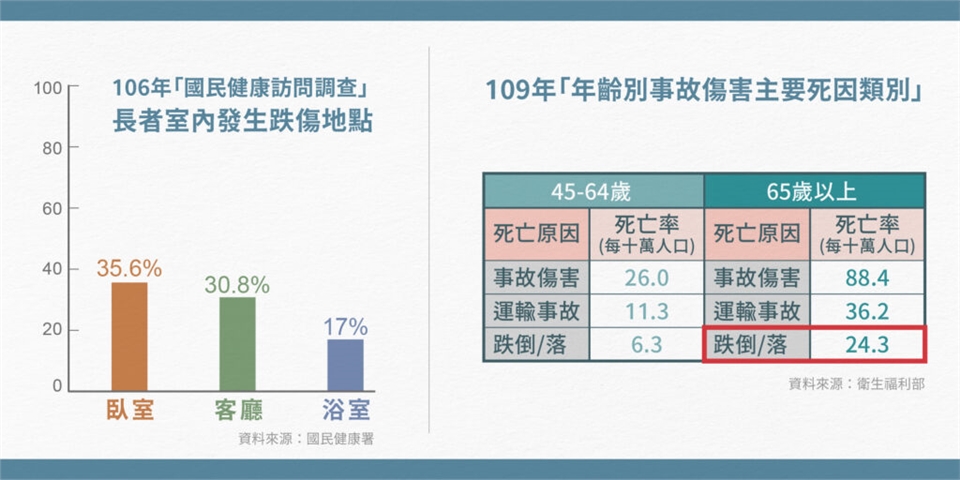 長者室內發生跌傷地點,第三名為浴室
