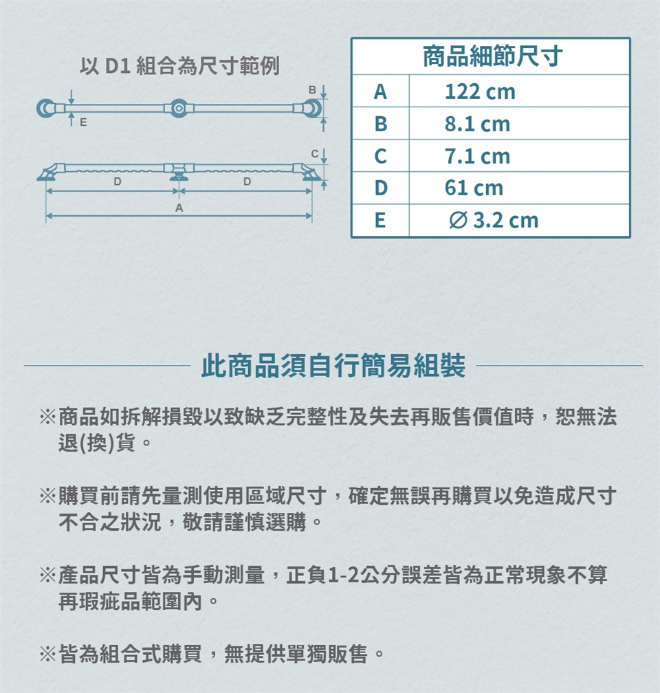 ※購買前請先量測使用區域尺寸,確定無誤再購買以免造成尺寸不合之狀況,敬請謹慎選購。