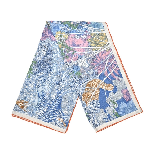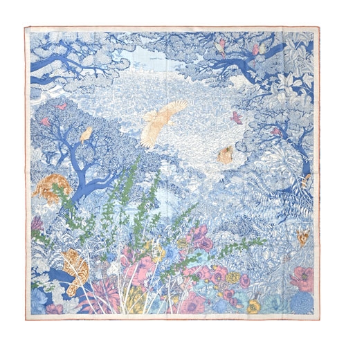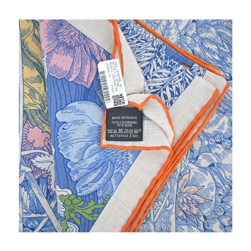 Hermes 愛馬仕 Retour a la Nature 140 cm手工捲邊喀什米爾與真絲混紡方巾(牛仔藍/粉紅/綠)