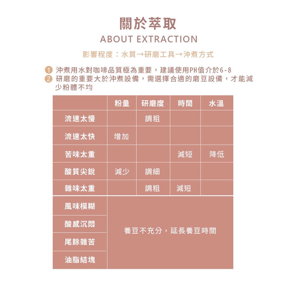 咖啡豆為天然農產品,咖啡風味會因季節氣候和沖煮方式、時間而有所不同。