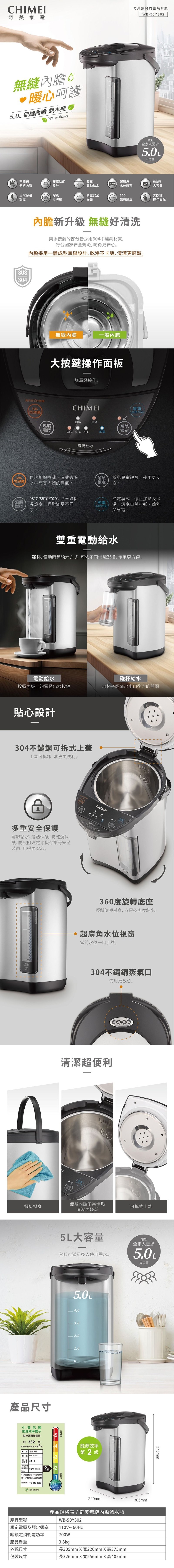 CHIMEI奇美 5L不鏽鋼無縫內膽熱水瓶 WB-50YS02