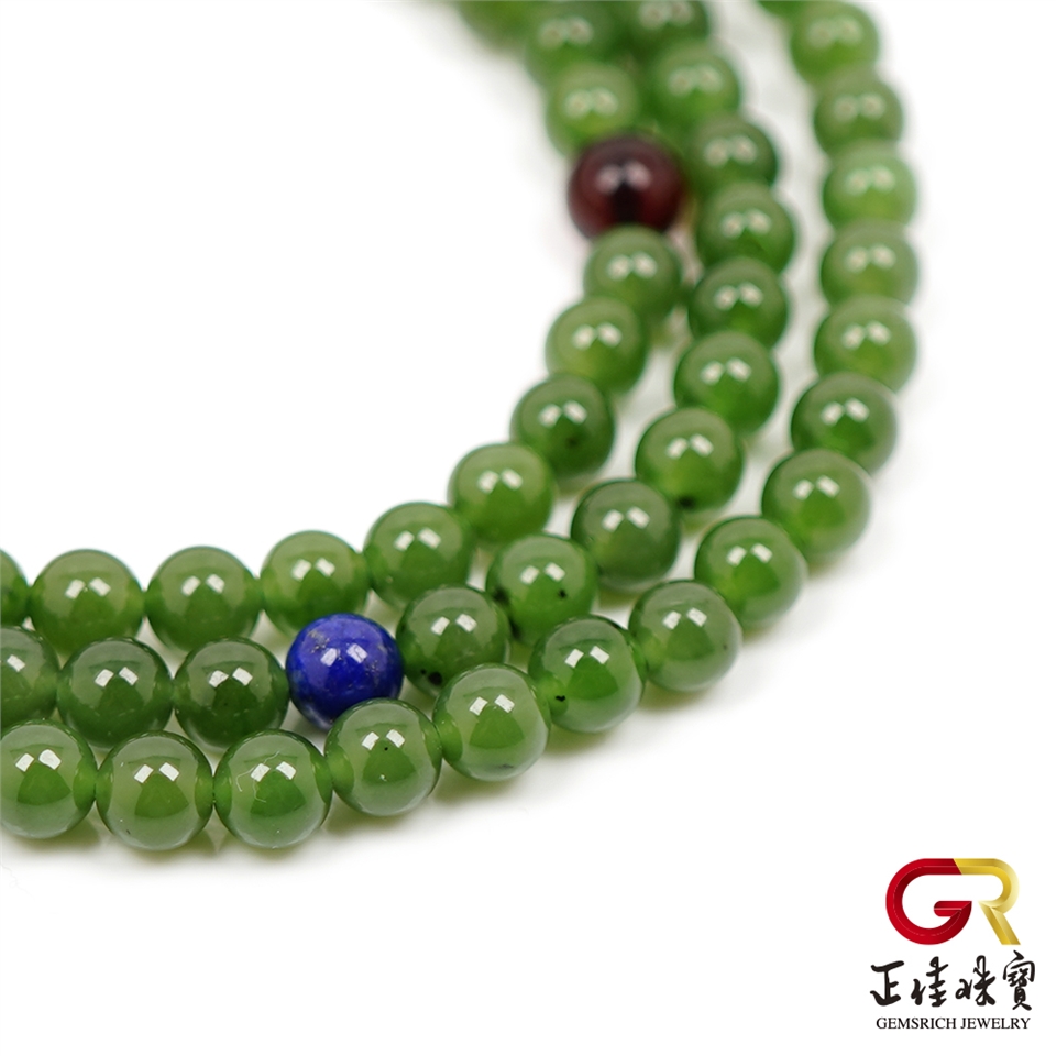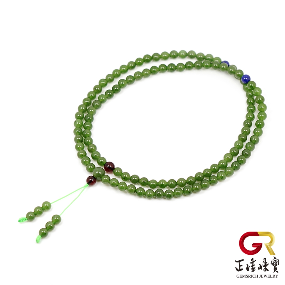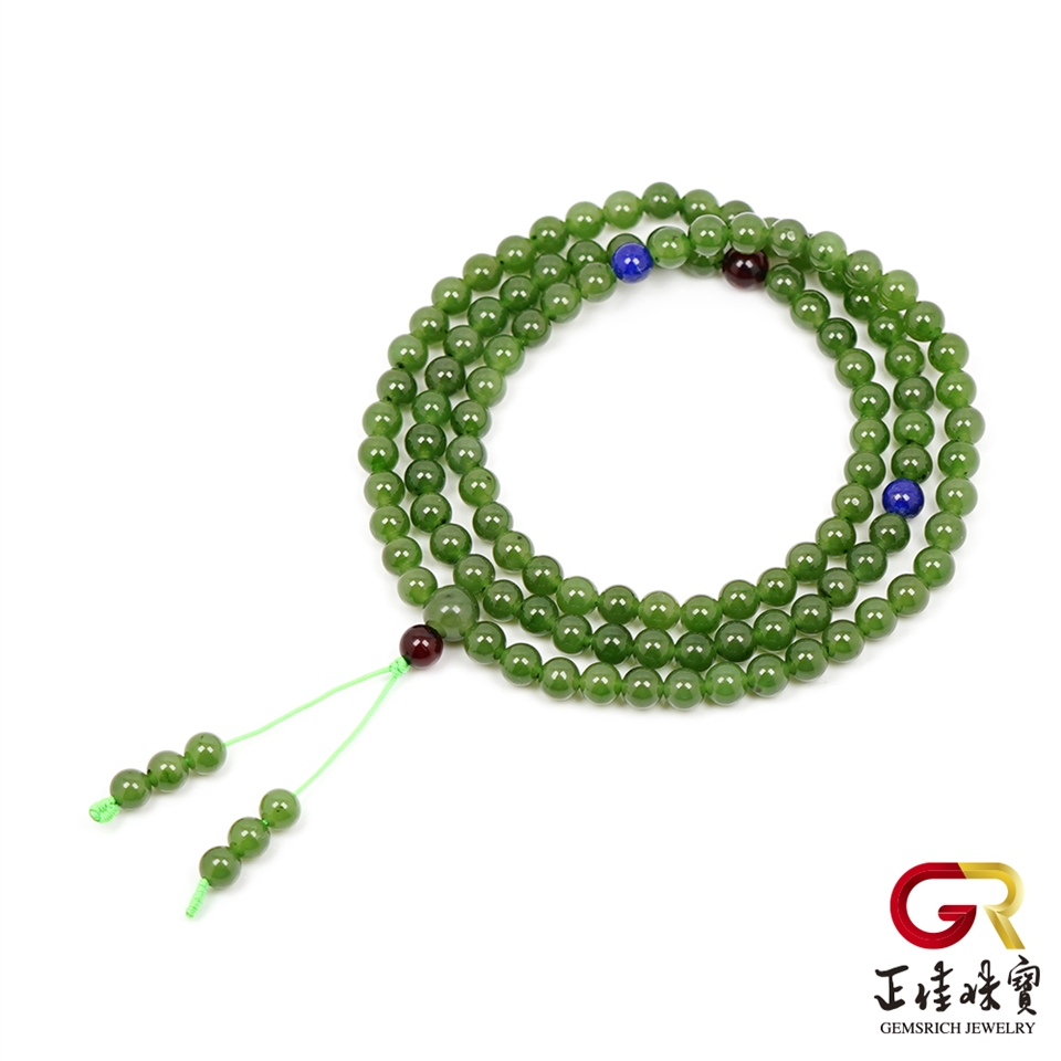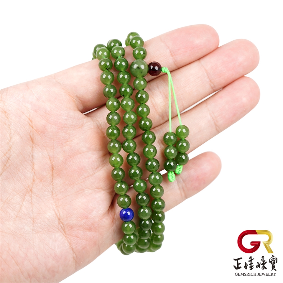 和田碧玉 蘋果綠 5.8-6.2mm 108顆 平安轉運珠 和田碧玉念珠佛珠|日本彈力繩