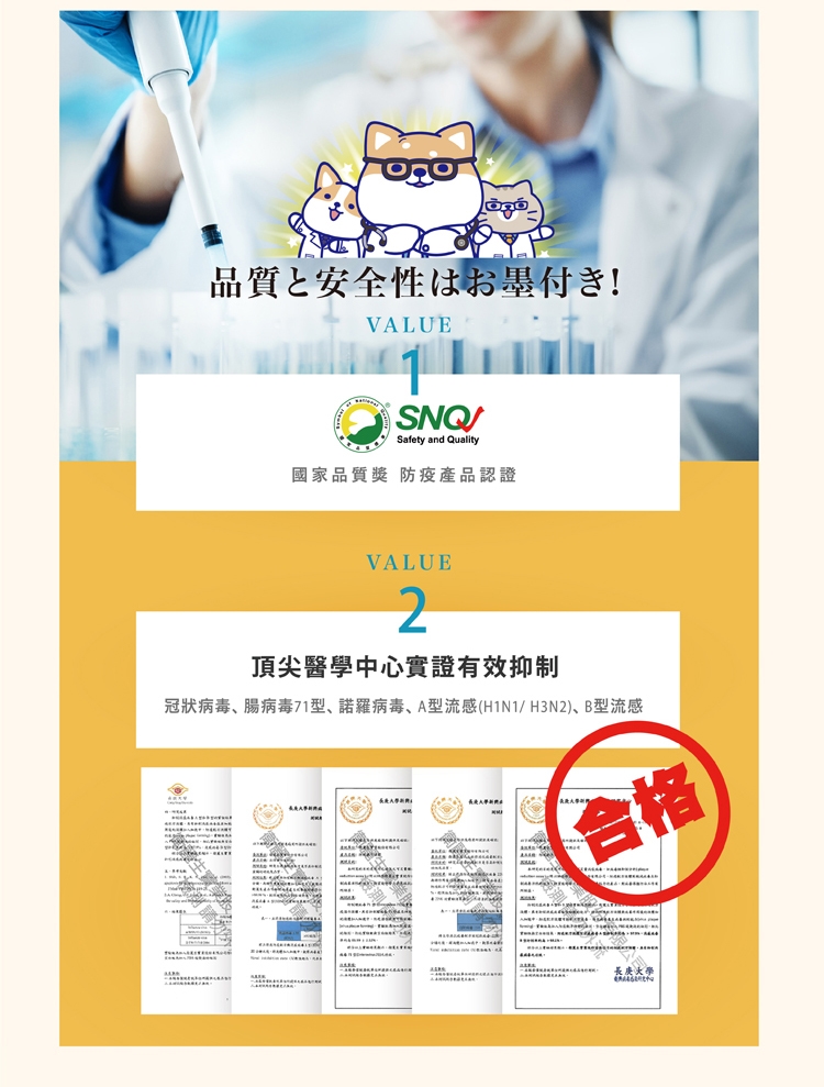 ■ 頂尖醫學中心實證,可有效抑制 冠狀病毒、腸病毒71型、諾羅病毒、A型流感(H1N1、H3N2)、B型流感