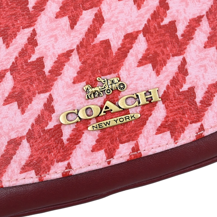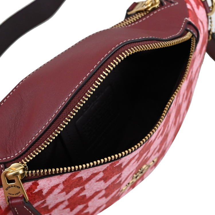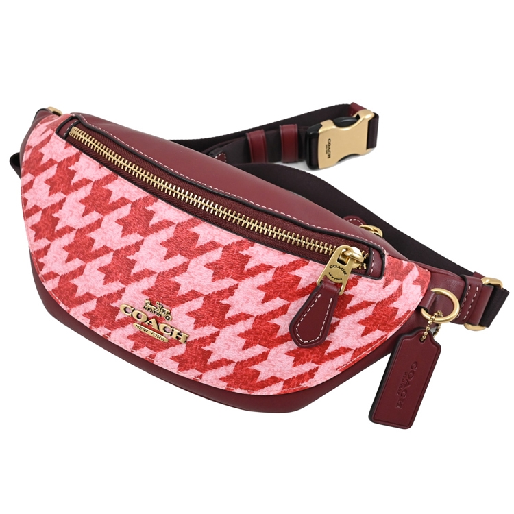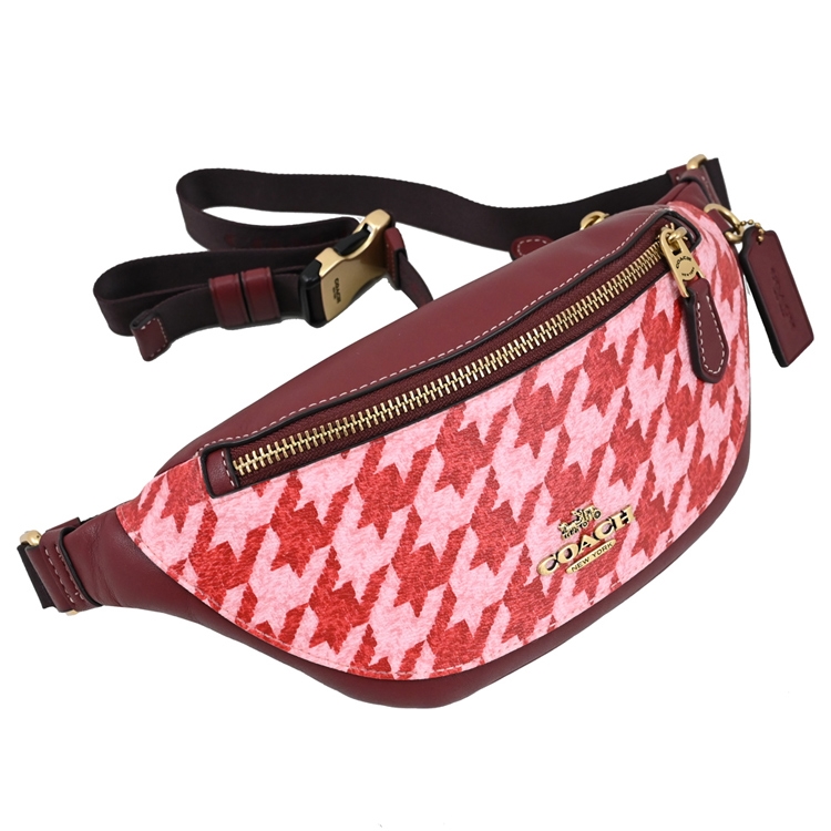 COACH 專櫃商品,與專櫃同步,新款中性腰包/胸口包系列,採千鳥格印花拼接皮革,拉鍊開口/外1拉鍊袋,附質感皮革LOGO吊飾,可收納短夾、手機等隨身物品,可斜背當胸口包或腰包,官網熱賣款,是款輕鬆出門的包款,無論外出逛街或出遊皆實用。
