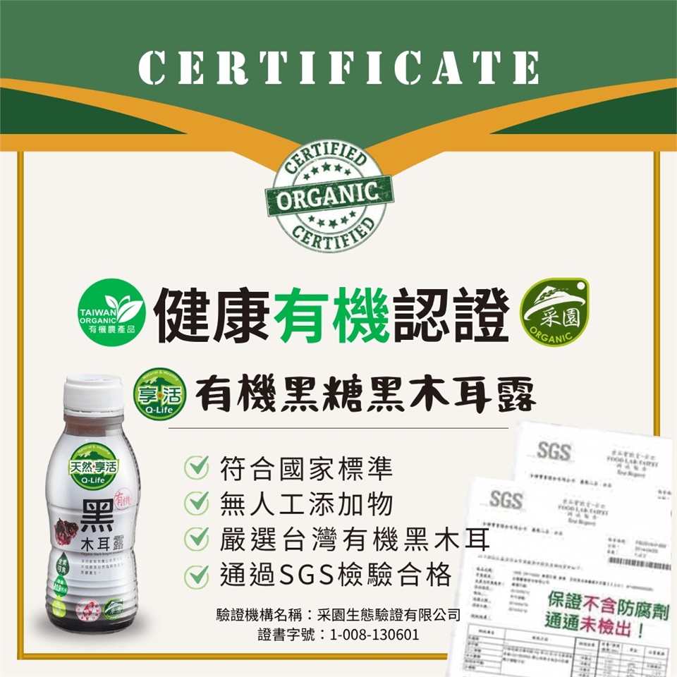 成分:水、有機黑木耳(台灣)、有機黑糖(菲律賓)