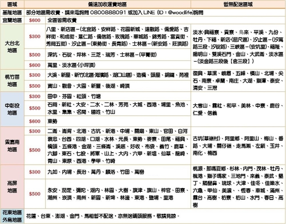 (6) 由於全台路段眾多,運費表未納入之地區路段,如經由物流回報需加收,本司亦有保有加價之權利。