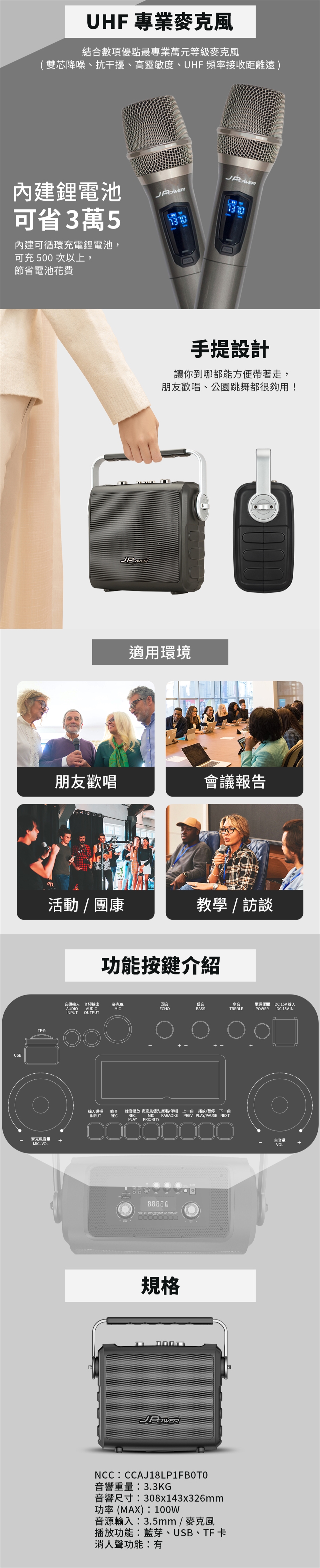 JPOWER 震天雷 6.5吋 便攜重砲版 行動KTV經典PLUS (編號:JP-AV-MK65CP)