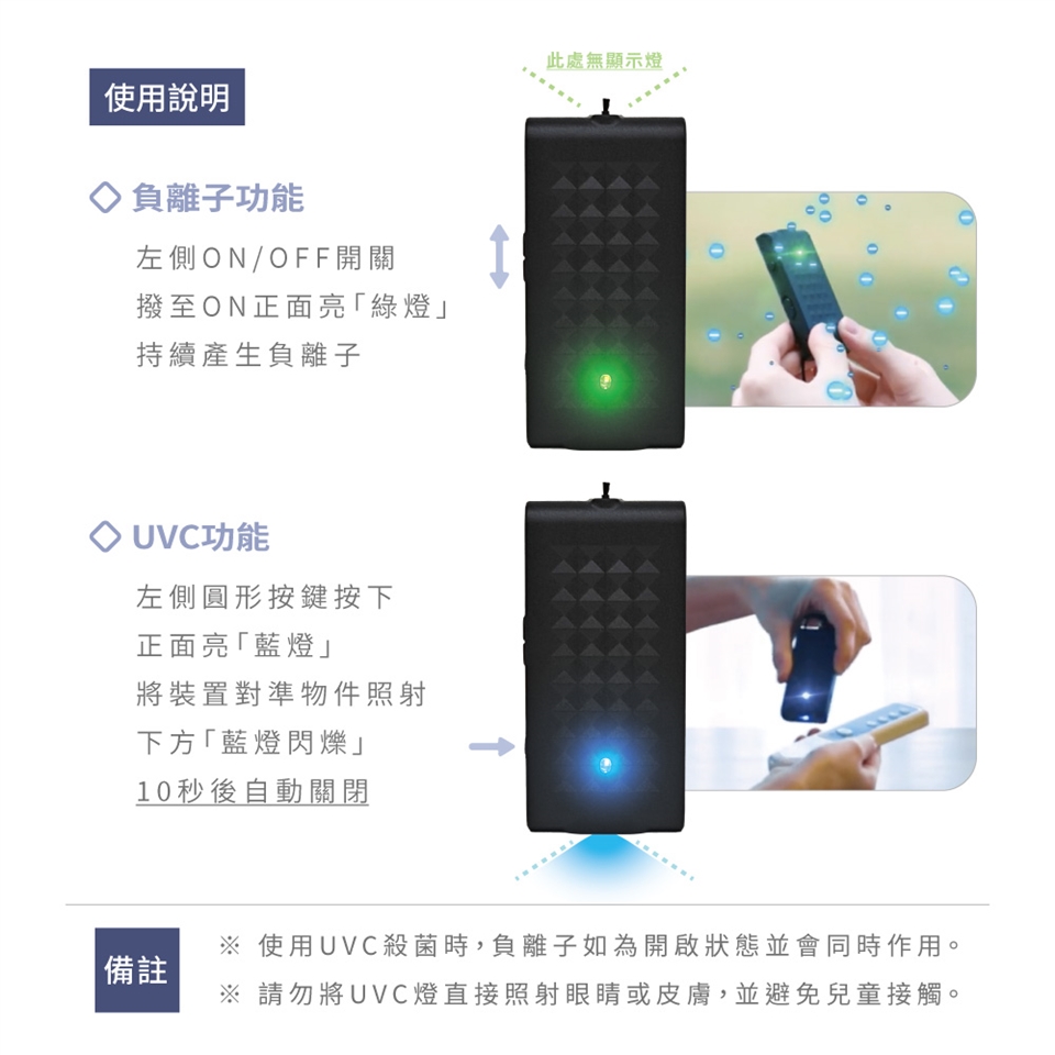 紫外線UVC對人的眼睛和皮膚有害,請勿將眼睛或皮膚直接暴露在UVC光線下。