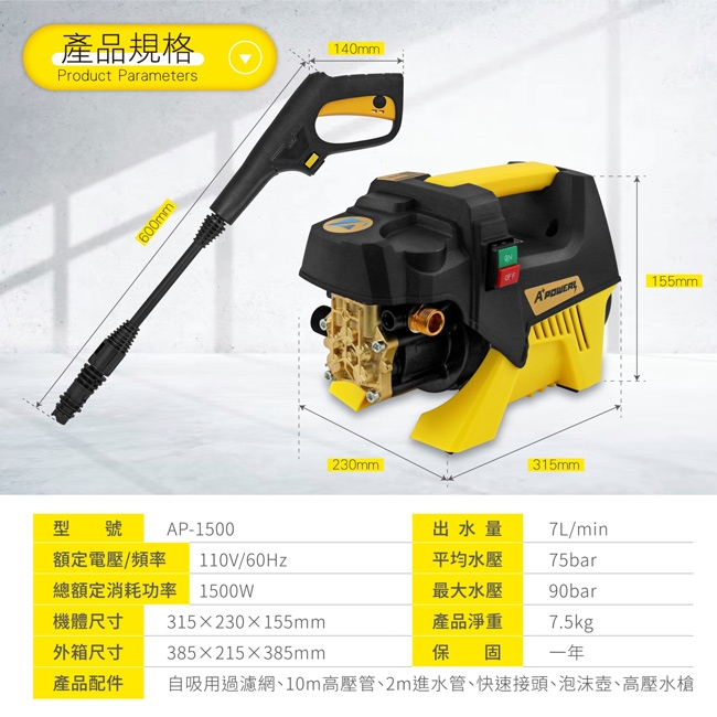 ◎1500W超大功率超強清洗力