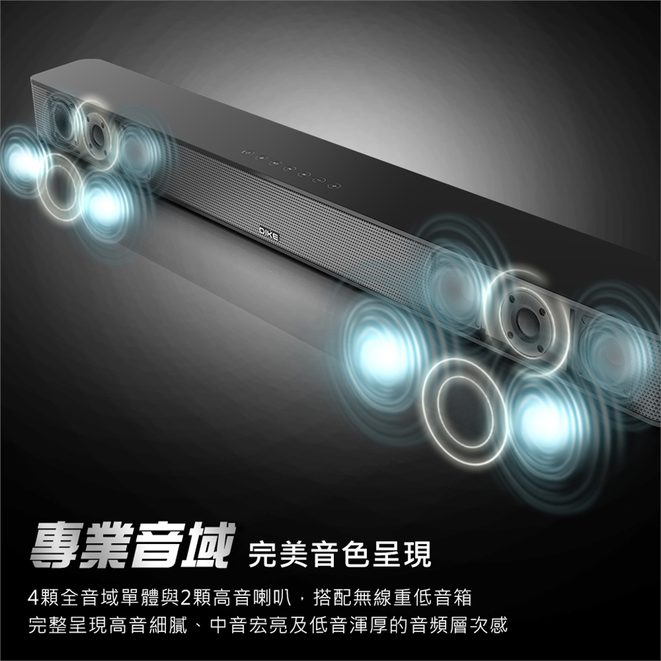 六顆中/高音喇叭搭配主動式重低音,賞片/聽歌一機搞定