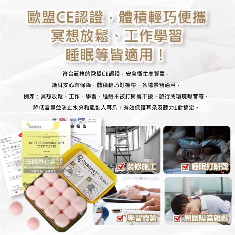 ●品名:Classic柔軟蠟質溫度塑型貼耳式隔音耳塞