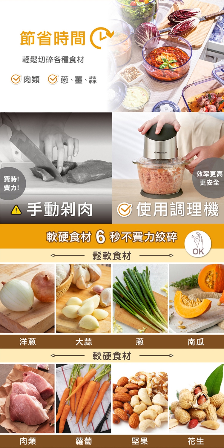 可以用來切碎、切塊或混合食材,只要輕鬆按下按鈕,不論是洋蔥、蔬菜、香草、堅果或肉類,