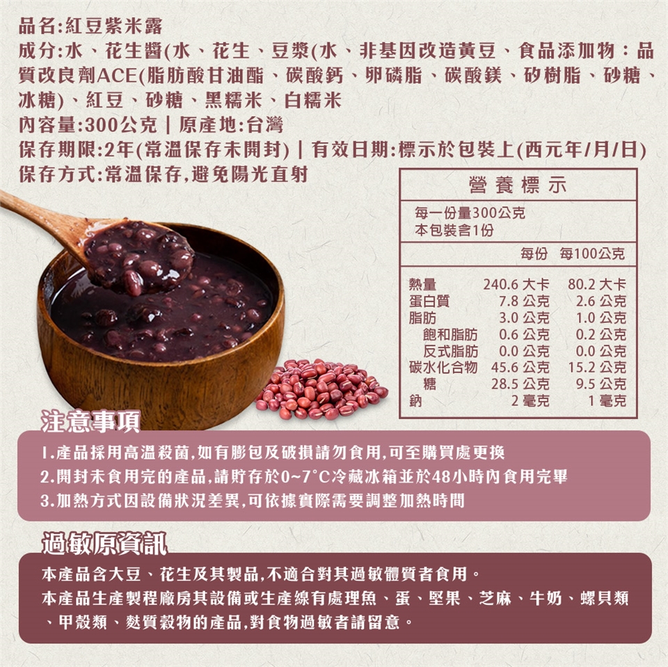 本產品探用高溫殺菌,如有膨包及破損請勿食用,可至購買處更換。