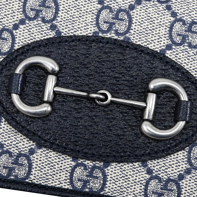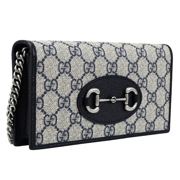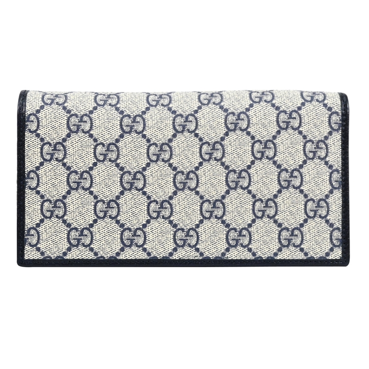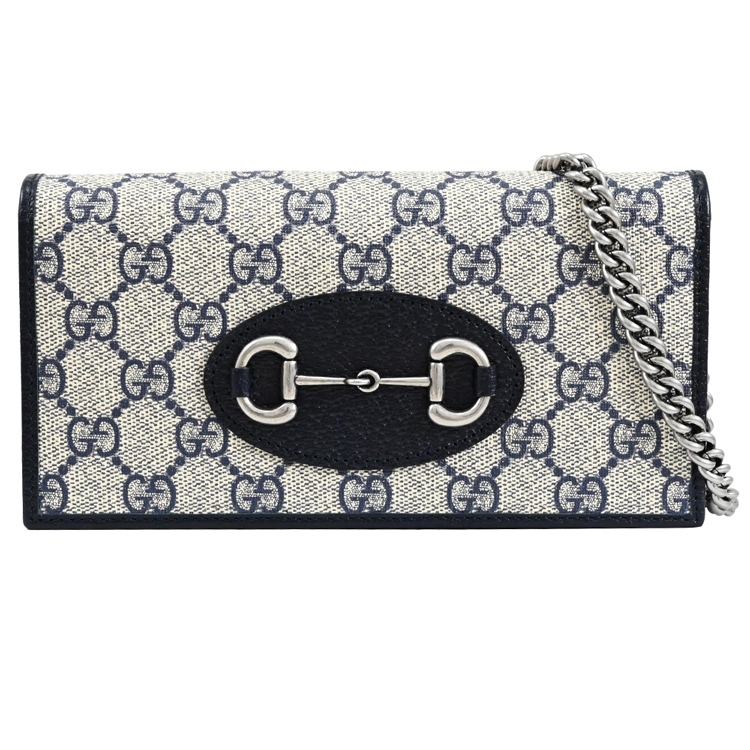 GUCCI 經典Horsebit 1955系列,經典馬銜釦飾搭配Supreme印花皮革拼接天然皮革材質/皮革內襯翻蓋釦式開口,內1風琴式夾層+1拉鍊袋+6卡片夾層+1貼袋供收納鈔票可攤平放置,可收納手機、鑰匙、卡片等隨身物品,簡約且實用的收納空間!