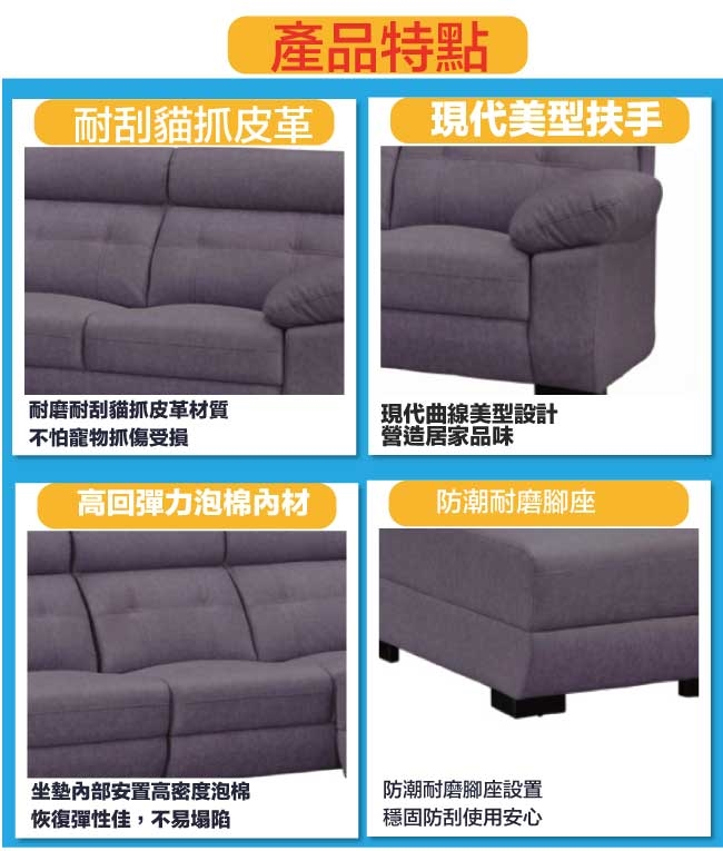 採用實木骨架椅身+耐磨貓抓皮革+透氣亞麻布+高回彈性加厚泡棉等安心材質製造
