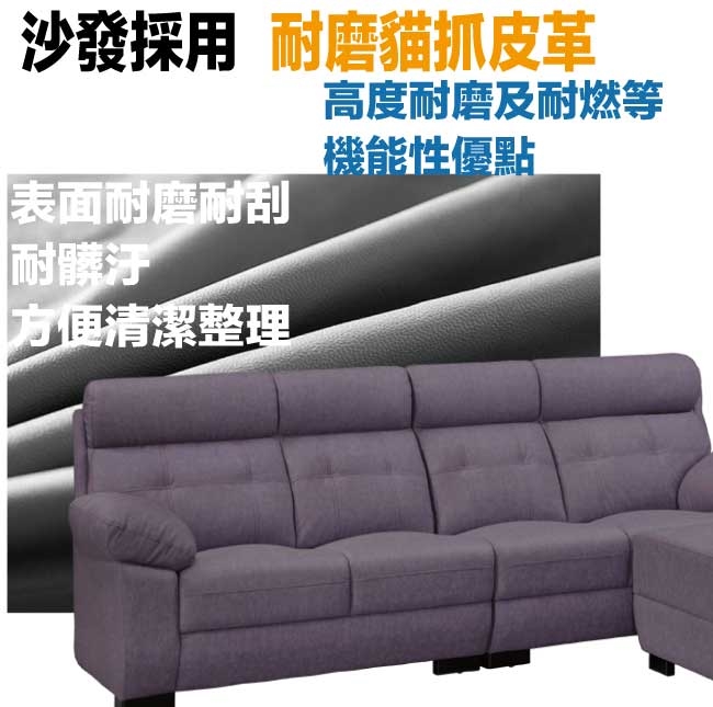 【文創集】卡派斯貓抓皮革L型機能沙發組合(四人座+椅凳組合) 時尚灰色系+現代美型外觀+安心材質設計,就是這種頂級質感的設計,能輕鬆地融入各種空間風格,採用實木骨架椅身+防潮黑漆腳座+耐磨貓抓皮革+高回彈性加厚泡棉等安心材質製造,品質安心有保障,現在購買專人送到府服務,免組裝+免運費,讓你省時省力省運費!