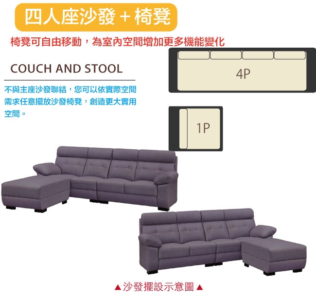 此款沙發腳椅可自由移動擺設,增加居家活動空間及便利實用性