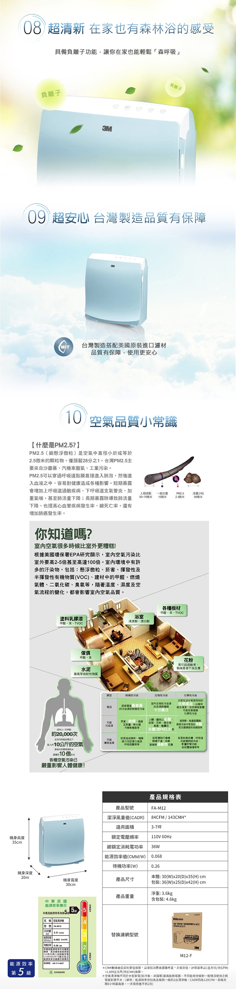 3M 淨呼吸超舒淨型空氣清淨機 FA-M12