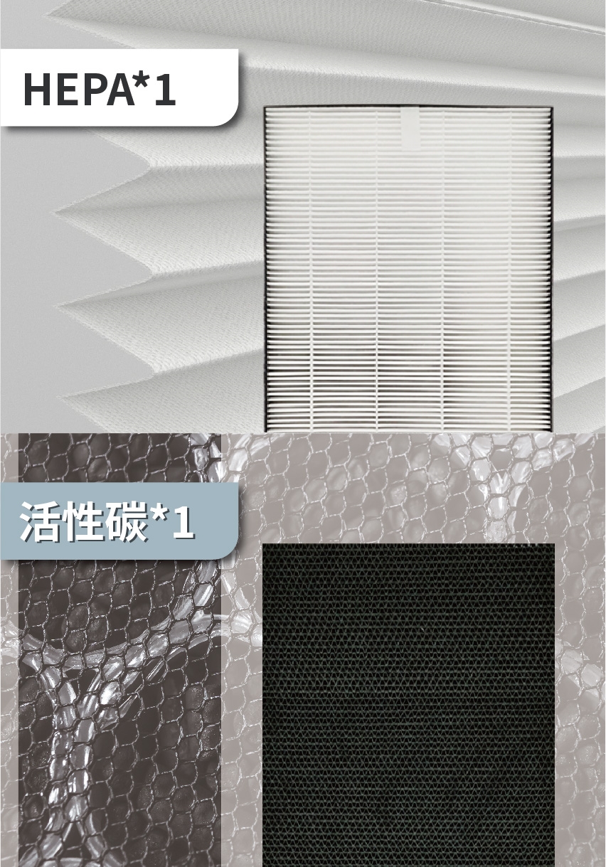 HEPA濾網有效過濾塵螨、灰塵、動物毛髮、PM2.5等空氣中微粒物