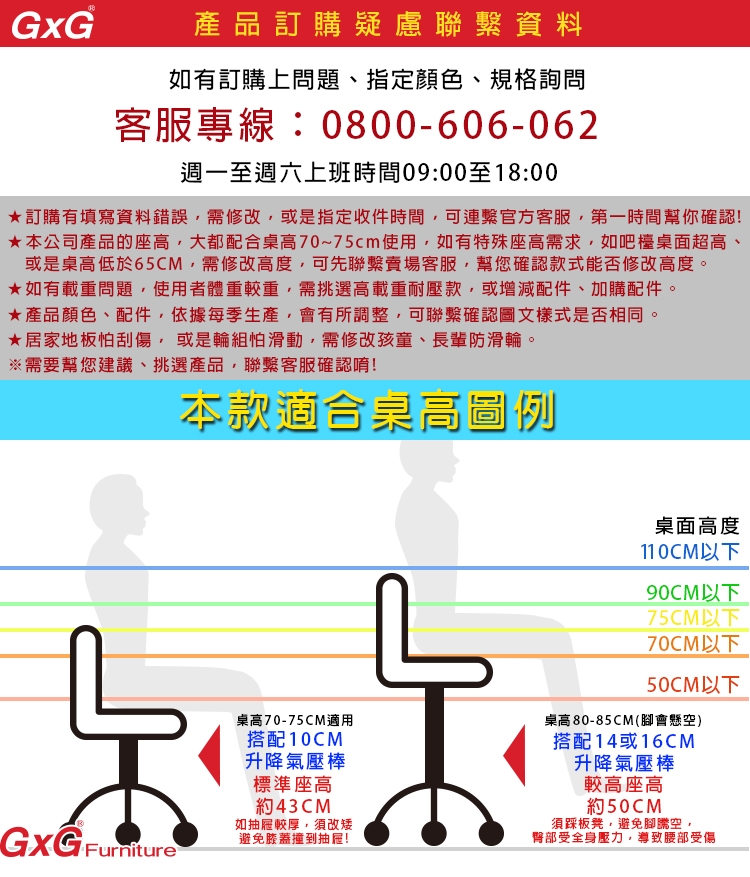 購買注意事項:本座椅高度,均以搭配標準桌高70~75CM使用。