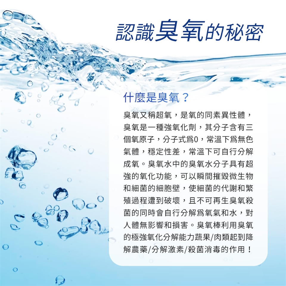 2.臭氧水不可飲用,若不慎接觸到眼睛,請用清水沖洗