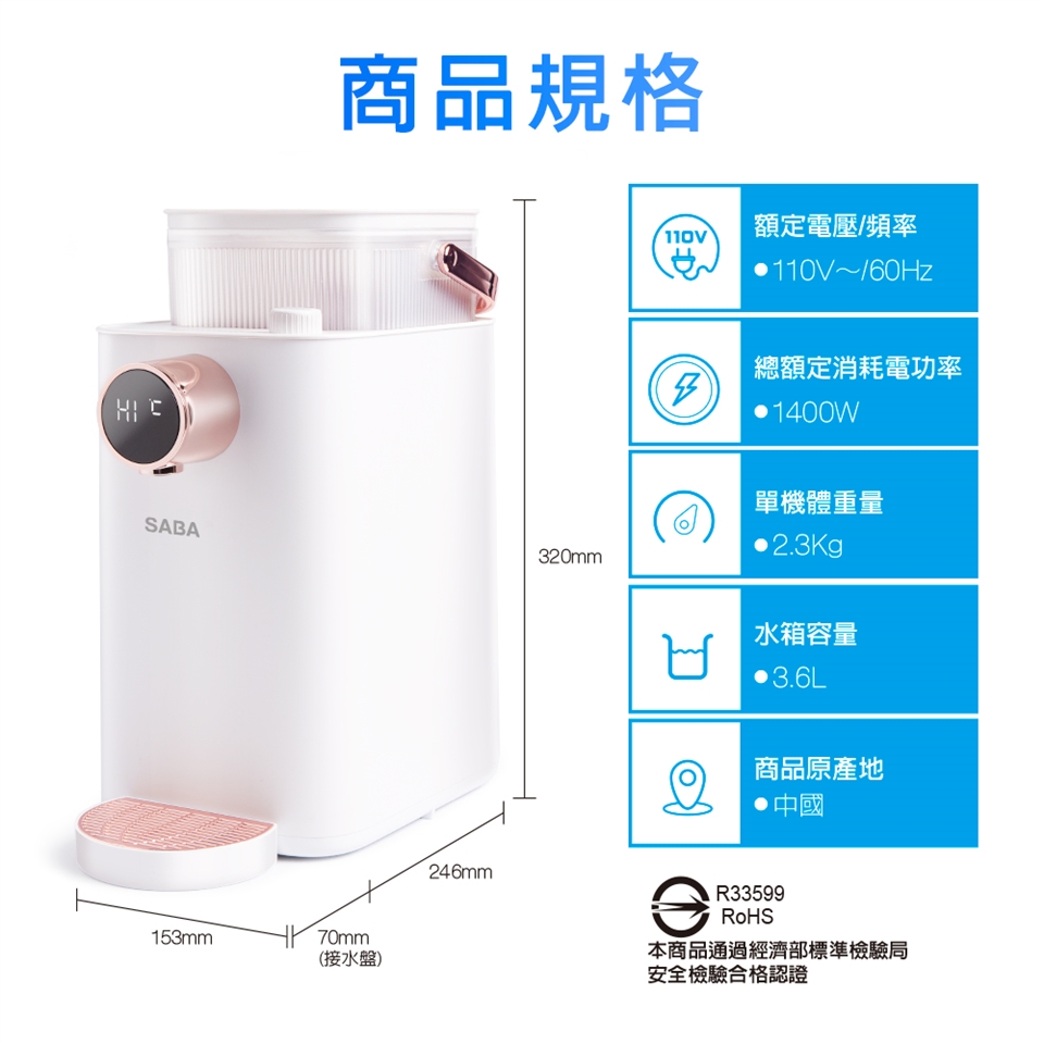 SABA 3.6L即熱式濾淨開飲機 SA-HQ07