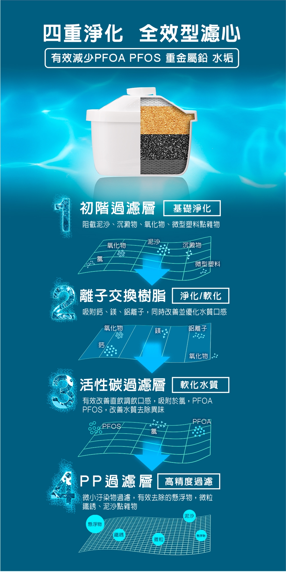 ◆使用全效型濾心,4層過濾更安心