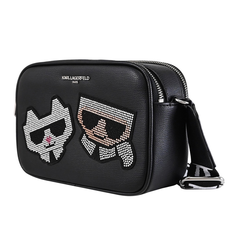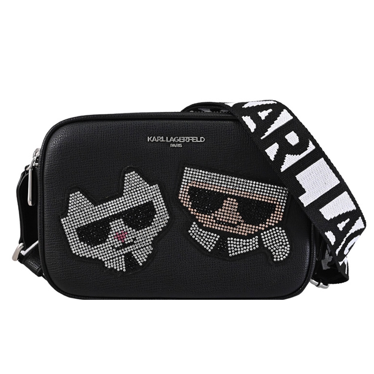 國際品牌KARL LAGERFELD 卡爾·拉格斐(簡稱老佛爺)成立於 1984 年,是當今時尚界代表人物,準確的掌握時尚氛圍中的每個要素,並將其轉化為當下時尚潮流,奠定了其世界级“時尚大帝”的地位。此款是專櫃熱銷最夯的斜背相機包,採用顯眼的老佛爺貓咪公仔水鑽造型拼接,俏麗可愛,雙層拉鍊開口/內含1貼袋+3卡夾層+外1貼袋供收納,內可放中夾及pro max手機等隨身物品,顯出低調奢華的質感,搶眼又好搭風格。