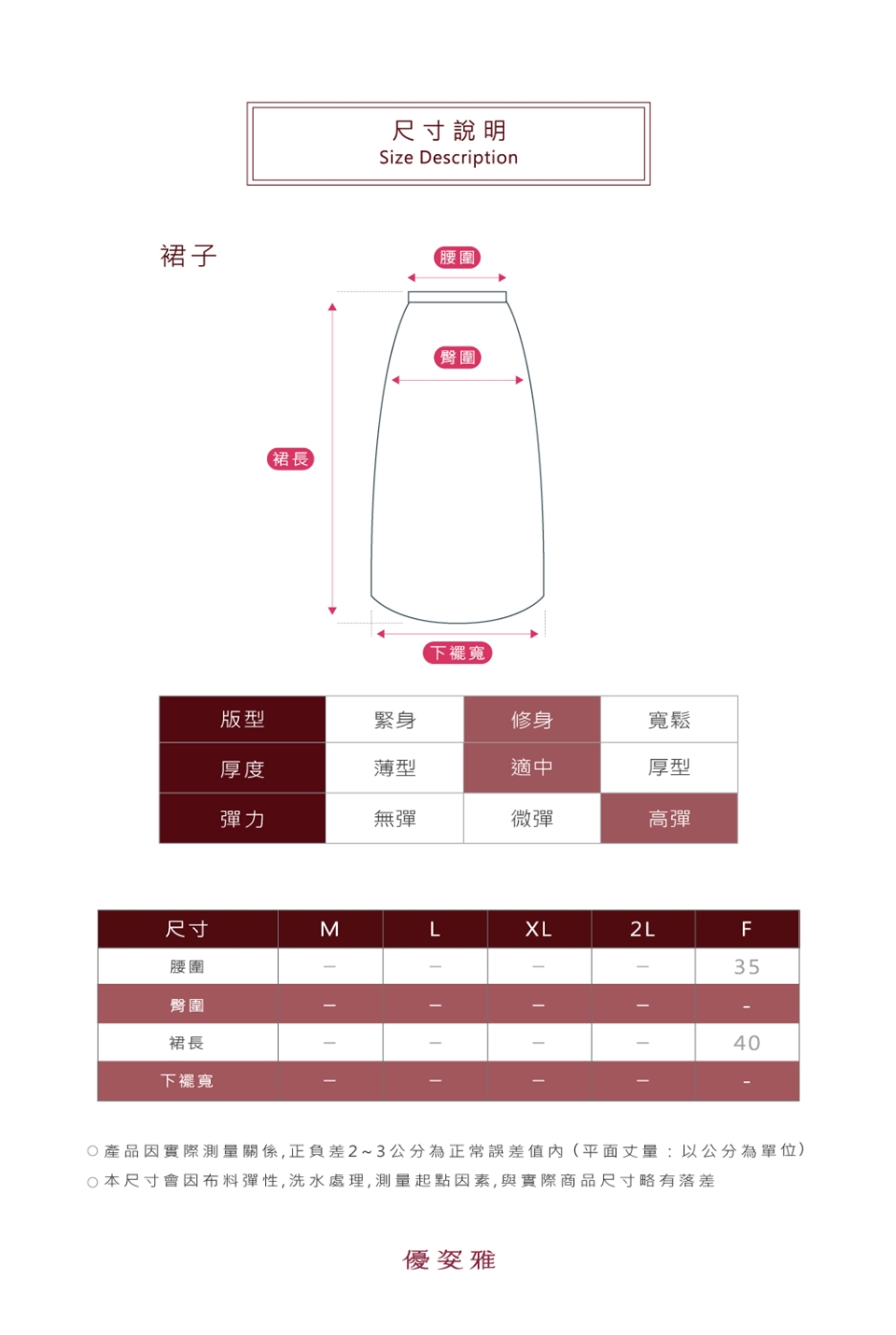 ※ 本尺寸會因布料彈性、洗水處裡、測量起點因素與實際尺寸略有落差