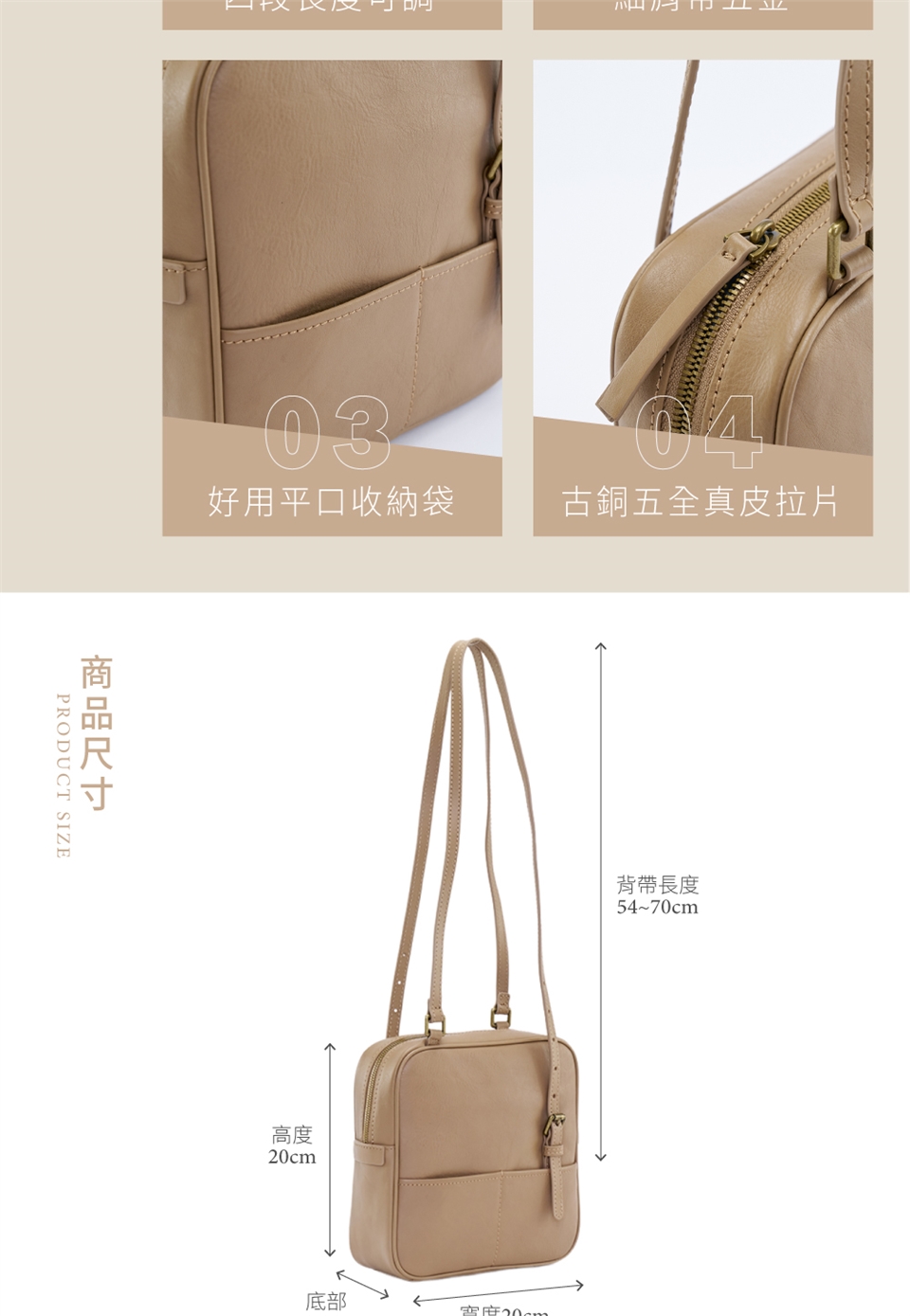 【尺寸】:包體約為寬20cm/高20cm/底部7cm/背帶長度54~70cm