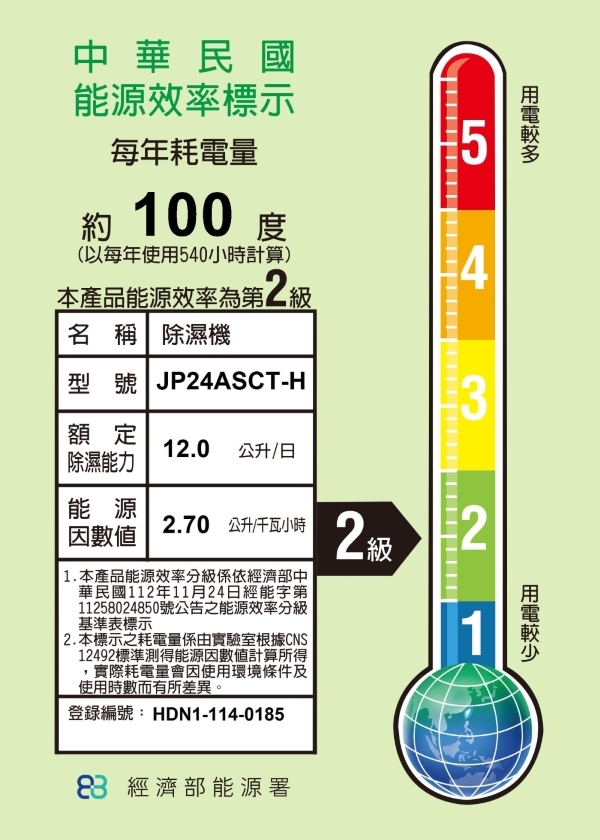 EF-能源因數值:2.70L/kWh