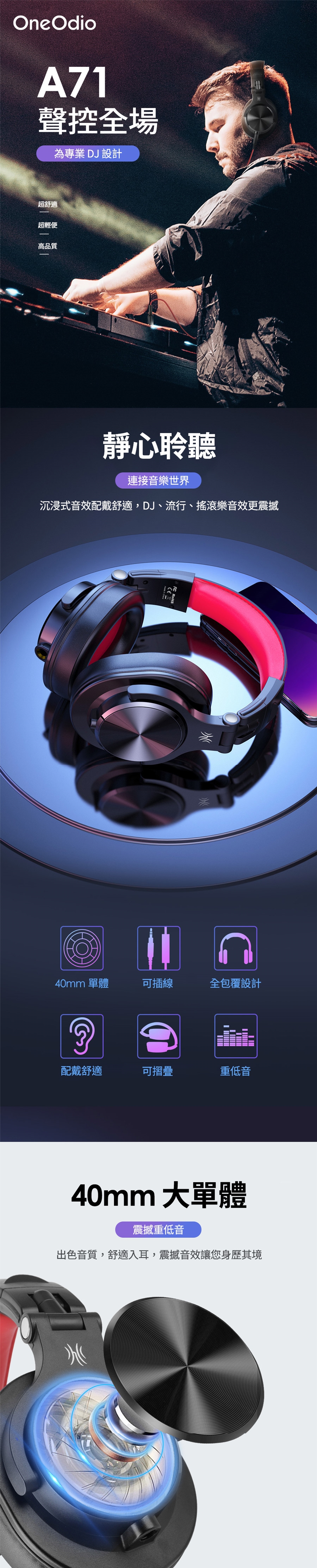 產品名稱:OneOdio A71 DJ監聽耳機
