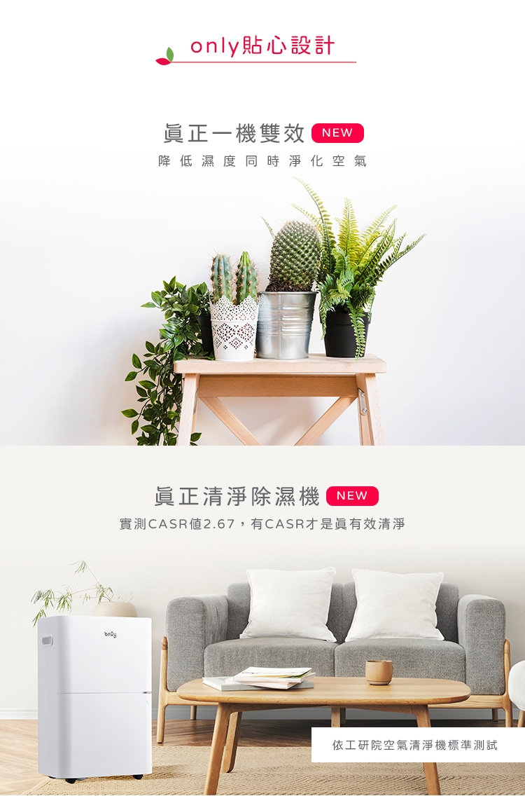 ※ 本款除濕機清淨能力,依標準規範實測CASR值為2.67,因以除濕為主,附加清淨為輔,並無單獨清淨,所以無另行申請清淨機能效分級標示。