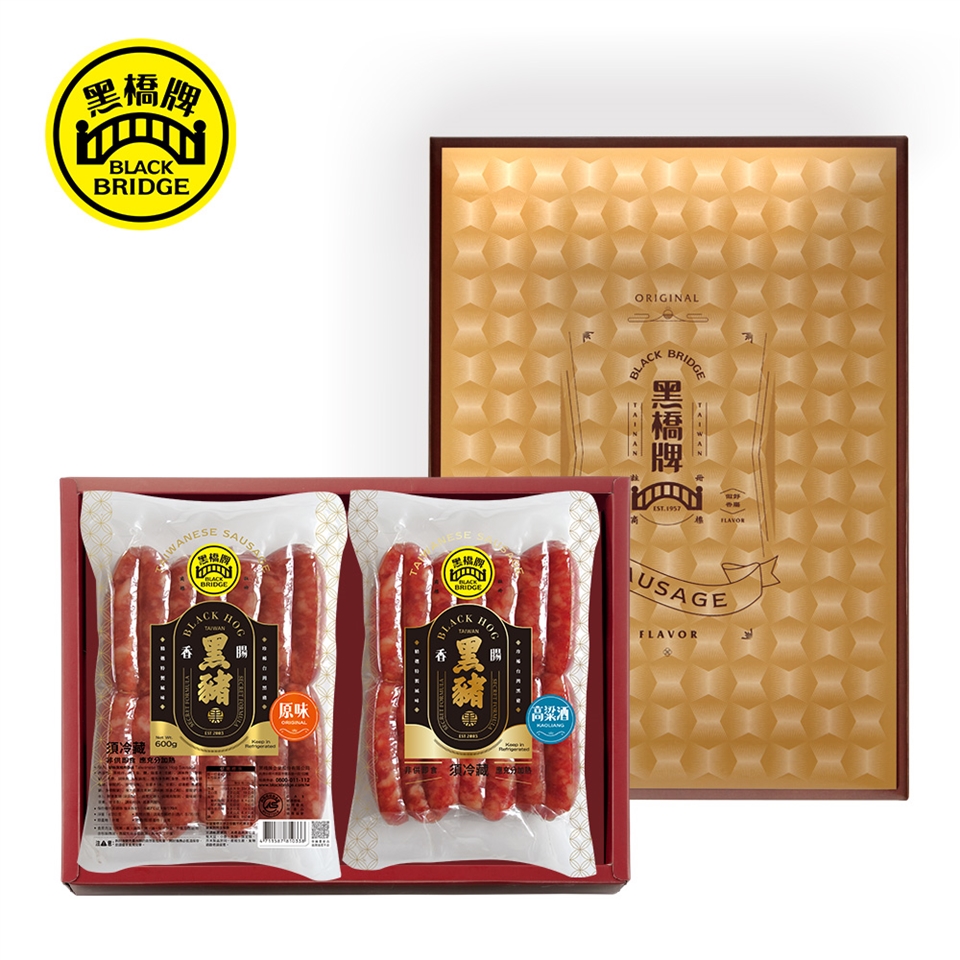 【黑橋牌】頂級黑豬香腸禮盒B(一斤原味黑豬香腸+500g高粱酒黑豬香腸)(冷藏), 2件組