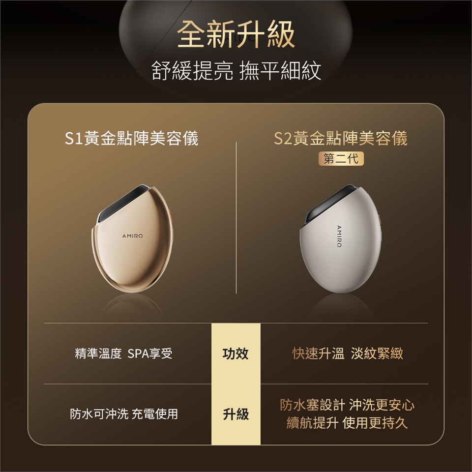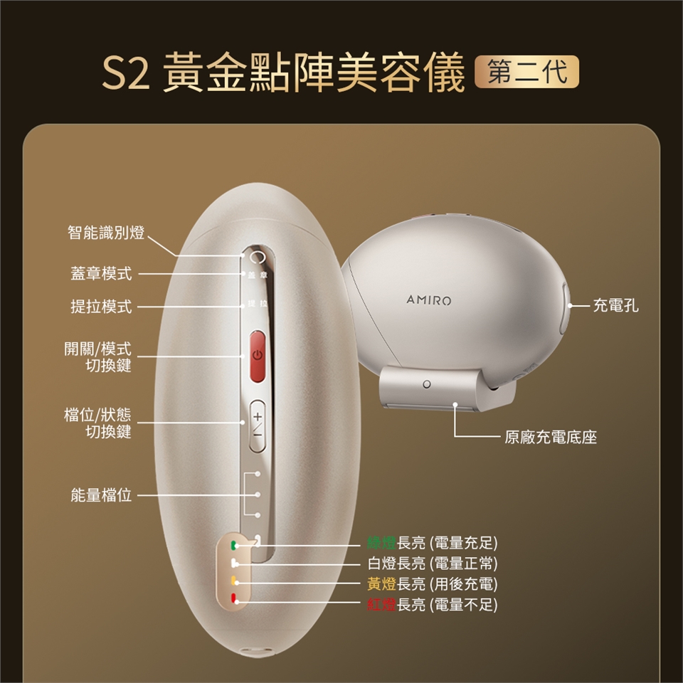 品名:【AMIRO】S2 黃金點陣美容儀(贈 S2 護膚禮盒-內含精華凝露80ml+緊緻抗皺面膜5片)