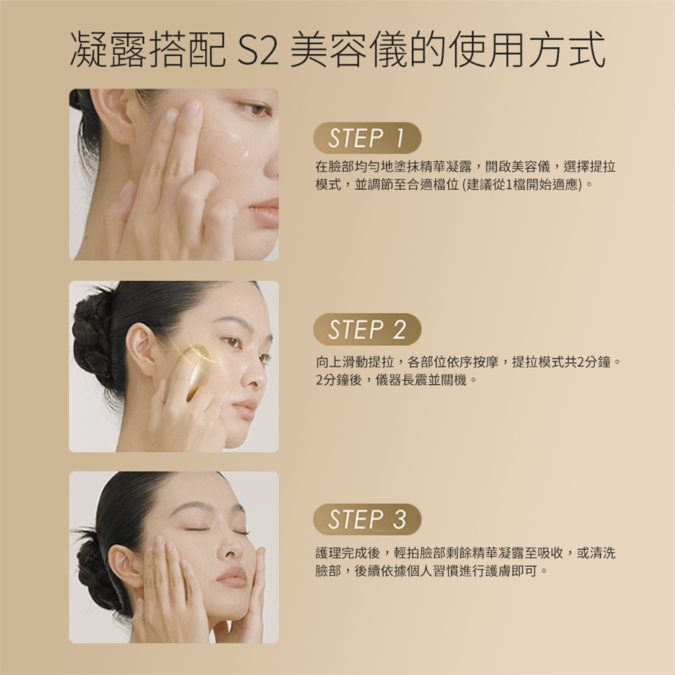 ·使用時,请注意需完全貼合皮膚,不搭配面膜使用前提下,需配合塗抹適當凝露使用。